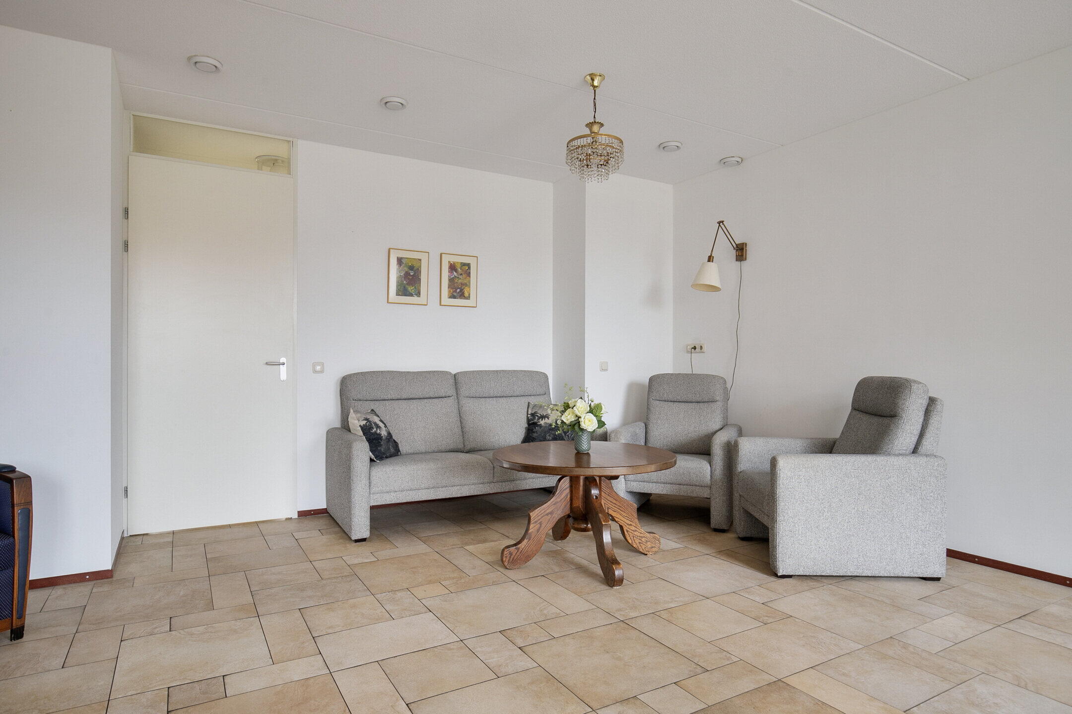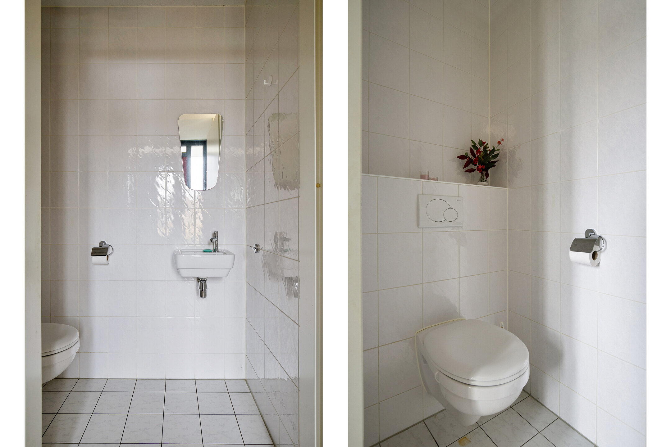 Uniek aan dit appartement is de eigen entree, wat zorgt voor extra privacy en een prettig, huiselijk gevoel. De hal biedt toegang tot een separate toiletruimte met wandcloset en fontein.